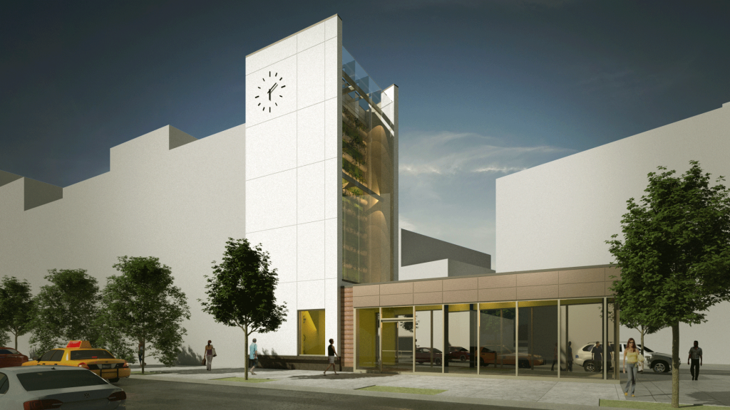 Our Broadway project, featuring a stunning vertical vegetated wall and a structural glass wall, has been approved by the Department of Buildings. The building boasts a unique vertical wall reaching almost 65 feet in height, which serves as a frame for the structural glass wall and the lush vegetated wall behind. This eye-catching solarium is set to become a unique landmark at the triangular site. Go to the project page.